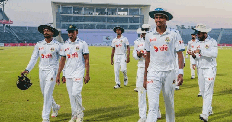 এর আগে বাংলাদেশ প্রথম ইনিংসে ৫৮৭–৮ ডিক্লেয়ার করে বিশাল সংগ্রহ গড়ে। মাহমুদুল হাসান জয় ১৭১ এবং নাজমুল হোসেন শান্ত ১০০ রান করে দলের ভিত্তি মজবুত করেন।