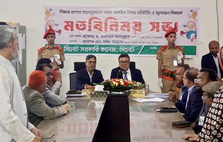 সিলেট সরকারি কলেজে জাতীয় বিশ্ববিদ্যালয়ের উপাচার্যের তাৎক্ষণিক পরিদর্শন