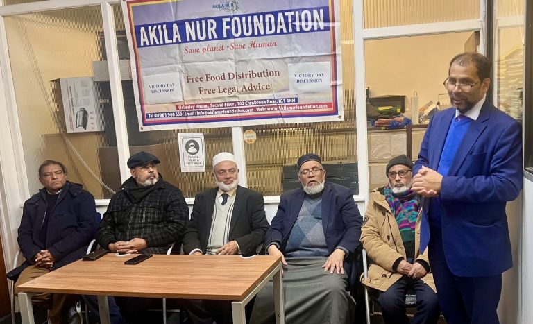 লন্ডন প্রতিনিধি: বাংলাদেশের মহান বিজয় দিবস উপলক্ষে আকিলা–নুর ফাউন্ডেশনের উদ্যোগে এক আলোচনা সভা ও দোয়া মাহফিল অনুষ্ঠিত হয়েছে। গত ১৭ ডিসেম্বর বুধবার বিকাল ৫টায় ইলফোর্ডের কিংডম সলিসিটারসের অফিসে আয়োজিত এই অনুষ্ঠানে মুক্তিযুদ্ধের চেতনা, বিজয়ের ইতিহাস ও স্বাধীনতা আন্দোলনের স্মৃতিচারণ করা হয়।