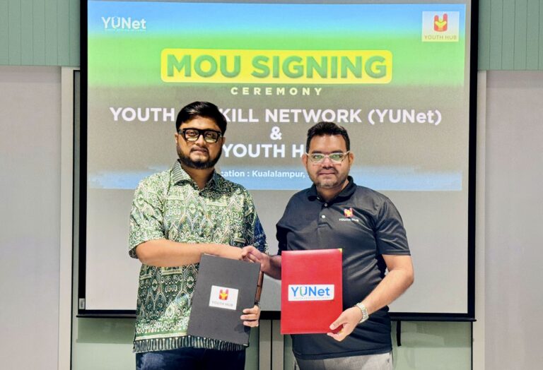 যুবদের দক্ষতা উন্নয়ন ও জাতিসংঘ ঘোষিত টেকসই উন্নয়ন লক্ষ্যমাত্রা (এসডিজি) অর্জনে যৌথভাবে কাজ করার লক্ষ্যে ইয়ুথ আপস্কিল নেটওয়ার্ক (ইউনেট) এবং ইয়ুথ হাব, মালয়েশিয়া-এর মধ্যে একটি সমঝোতা চুক্তি (এমওইউ) স্বাক্ষরিত হয়েছে। শনিবার (১০ জানুয়ারি) কুয়ালালুমপুরে ইয়ুথ হাবের মালয়েশিয়া কার্যালয়ে আনুষ্ঠানিকভাবে এই চুক্তি স্বাক্ষর অনুষ্ঠান অনুষ্ঠিত হয়।