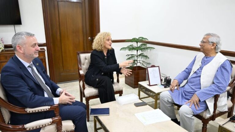 রোববার ঢাকার রাষ্ট্রীয় অতিথি ভবন যমুনায় বাংলাদেশে ইউরোপীয় চেম্বার অব কমার্স (ইউরোচেম)-এর চেয়ারপারসন নুরিয়া লোপেজের সঙ্গে সৌজন্য সাক্ষাতে এসব কথা বলেন প্রধান উপদেষ্টা। বৈঠকে বাংলাদেশে নিযুক্ত ইউরোপীয় ইউনিয়নের রাষ্ট্রদূত মাইকেল মিলারও উপস্থিত ছিলেন।